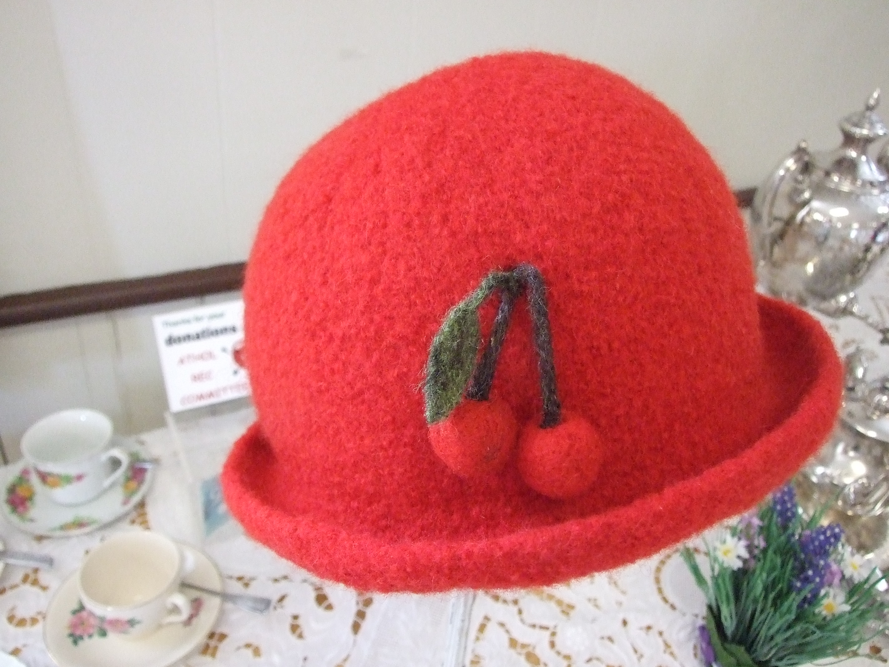 Lovely hat made by Carol King and raffled off to the lucky winner!