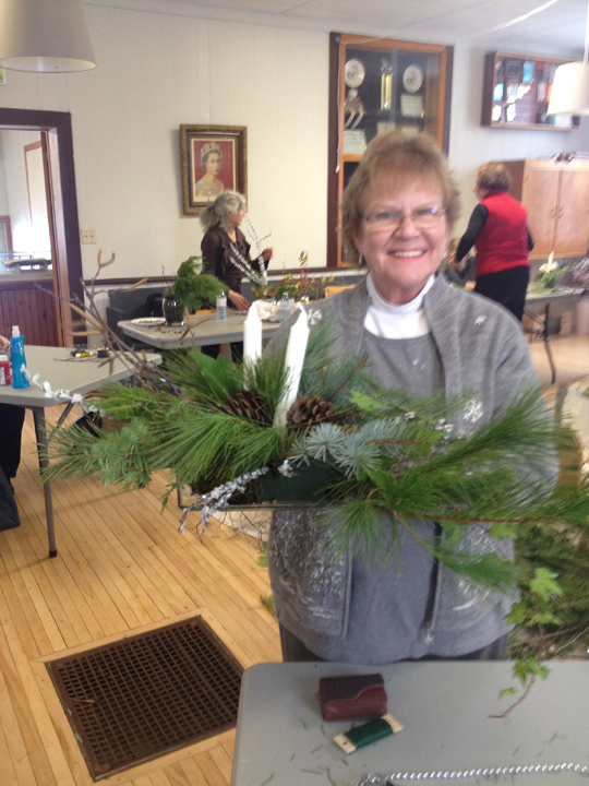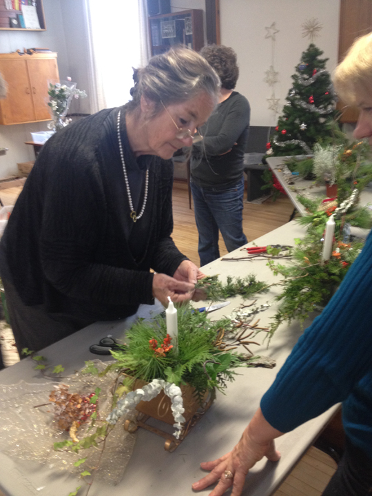 Last Sunday afternoon the Athol Recreation Centre was filled with the sights, smells and textures of the holiday season during local Cherry Valley resident Jutta Naim’s, Sticks and Stones workshop. Beautiful arrangements for the holiday table were created under the inspirational guidance of Jutta. The workshop was followed by a wonderful potluck luncheon. Special thank you to Jutta and her group of volunteers for making the afternoon so special. All in attendance hope she will be back in the Spring to inspire us once again.