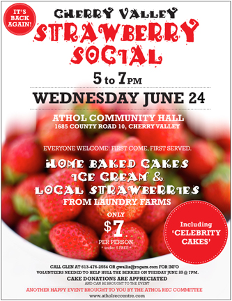The Athol Recreation Committee and friends came together to host the Strawberry Social once again this year. Many thanks to the many, many volunteers (some pictured above) who came out to hull strawberries, help set-up, serve and clean up after the event. Special thanks to our many wonderful bakers who donated delicious and creative “works of art” cakes to the event.