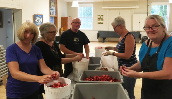 Our behind the scenes strawberry hullers! Donna, Janet, Wayne, Ann, Cath and Glen (not shown). Thank You!!!!