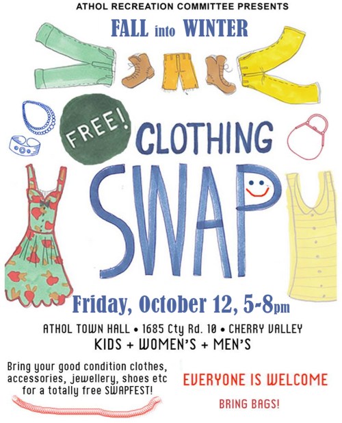 There was a steady flow of people who attended our Clothes Swap in Cherry Valley last night. Lots of swapping and lots of yummy treats like Vicki’s potato pie!